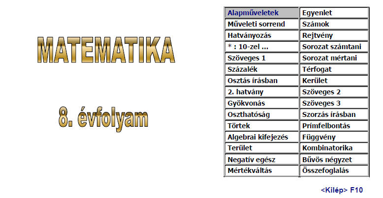A 8. évfolyam bejelentkező képernyője